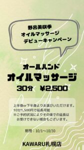 デビューを祝しまして、オイルマッサージ30分¥2,500の