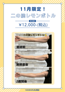 これまでフェイスラインやお顔を中心に行なっていたレモンボトルに、お得な二の腕メニューが登場しました!